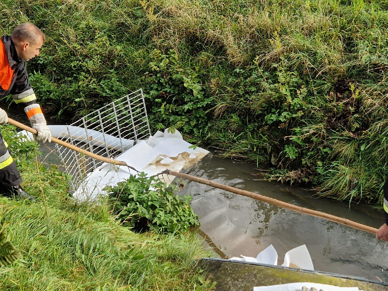 Heute wurden wir durch die ILS Landshut mit dem Stichwort Öl auf fließendem Gewässer alarmiert. In der Ortsmitte von Herrngiersdorf lief auf Grund eines technischen defektes bei einer Landwirtschaftlichen Erntemaschine eine größere Menge Diesel aus. Dieser lief über den Oberflächenkanal in den Siegersbach. Durch die Feuerwehr wurden mehrere Ölsperren im Siegersbach gesetzt und der Diesel mit Ölflies gebunden.
