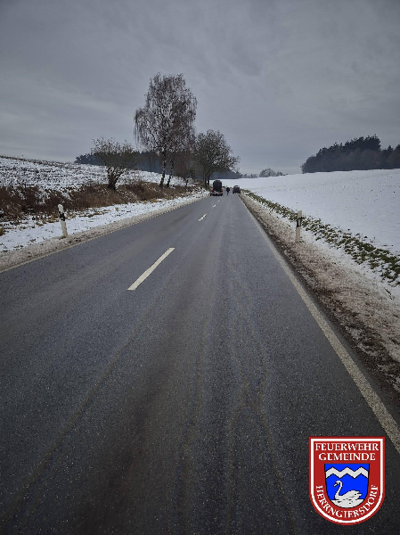 Ein PKW hatte einen Motorplazer und verursachte eine ca. 300 Meter lange Ölspur, die sich teilweise über die komplette Fahrbahn zog. Das ausgetretene Öl wurde von der Feuerwehr gebunden. Von seiten des Kreisbauhofes wurden die Warnbeschilderung erstellt und die Fahrbahn wieder freigegeben.